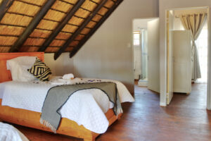 An ideal space for gathering under the African sky. With a sheltered thatched roof, private pool and a built-in braai.